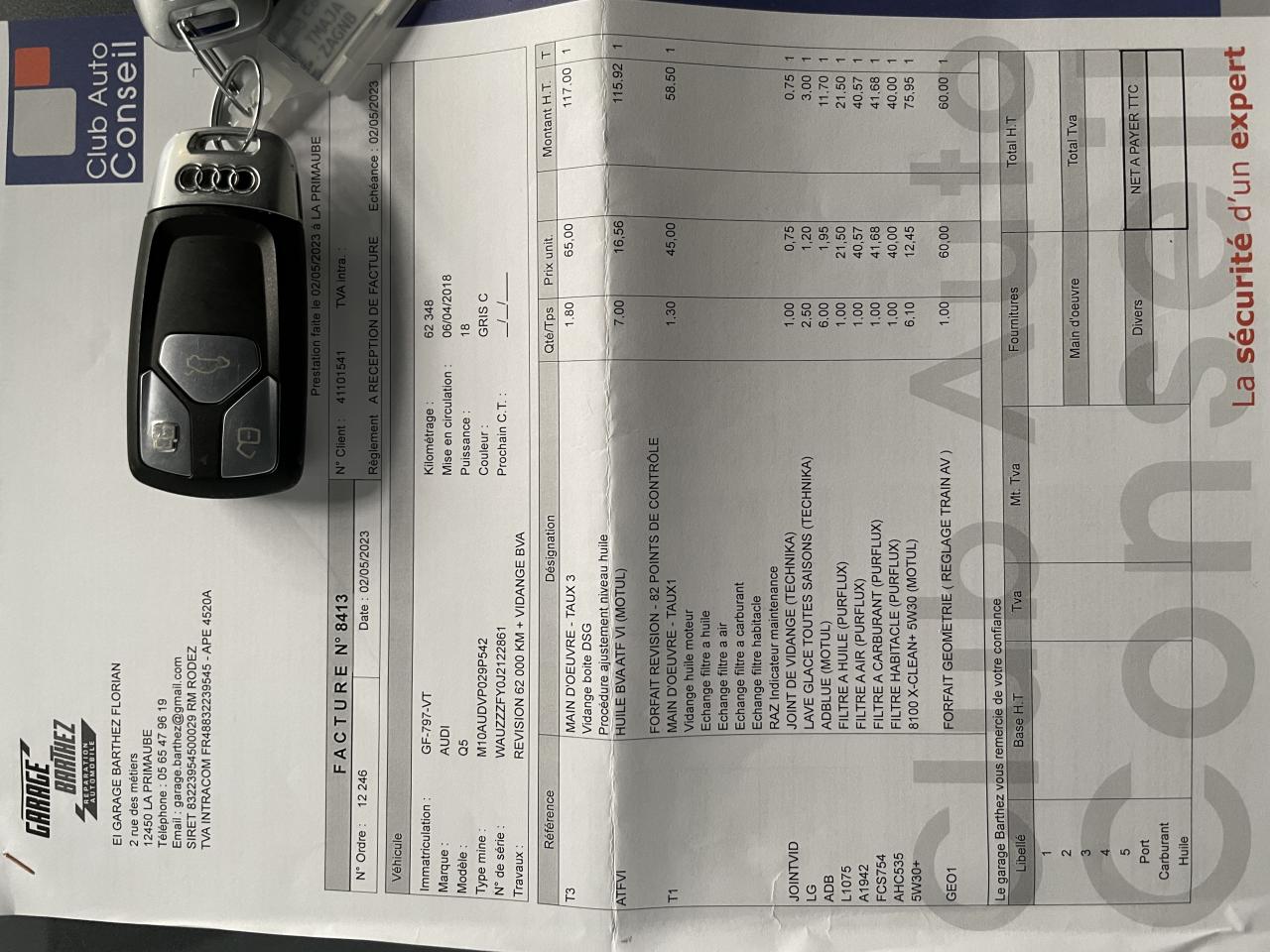Audi Q5 3.0 V6 TDI 286 ch, gris métallisé ( 891€ ), 18 cv, 5 portes, première mise en circulation le 06/04/2018.