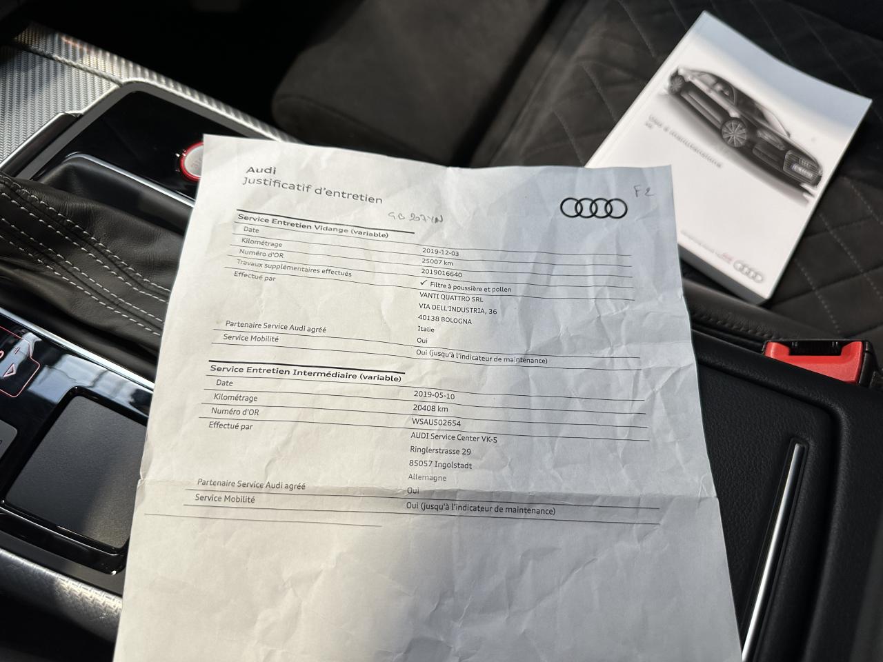 - 1er entretien fait le 10/05/2019 à 20 408Km chez Audi. ( Vidange moteur )
