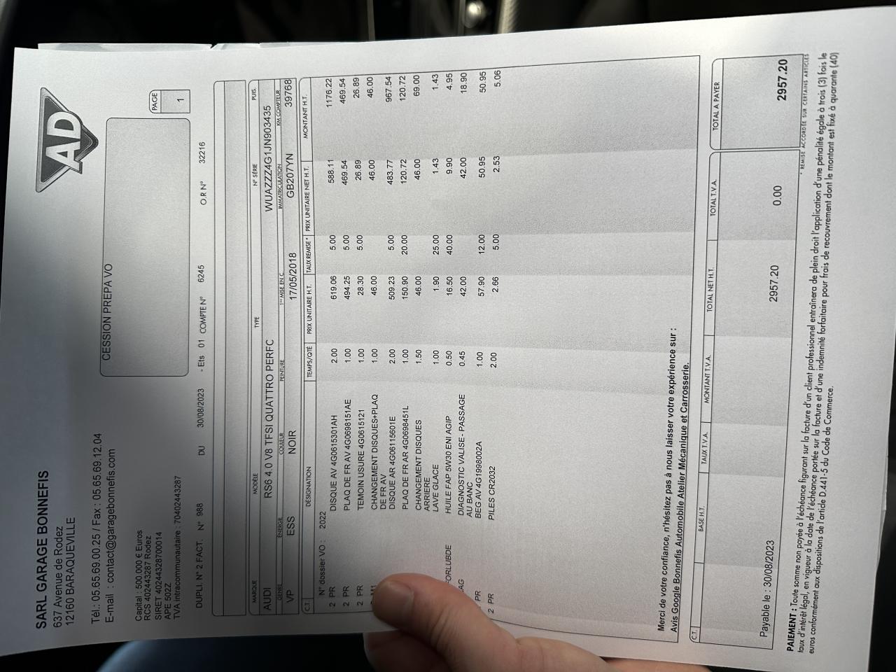 - 4ème entretien fait le 30/08/2023 à 39 768Km dans nos locaux. ( Disques et plaquettes de freins avant et arrière )
