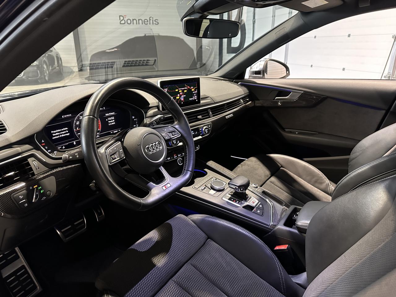 Nombreuses options : GPS, caméra de recul, Apple CarPlay, virtual cockpit, bluetooth, radars avant et arrière de détection d'obstacles, régulateur de vitesse adaptatif ACC, climatisation automatique, jantes aluminium, hayon électrique, Audi Drive Select, crochet d'attelage escamotable mécaniquement, avec déverouillage électrique (791,00 €), Active Lane Assist, airbags latéraux AR (366,00 €), applications décoratives en Carbone Atlas (458,00 €), assistant de conduite efficiente, Audi Hold Assist (83,00 €), Audi Park Assist (275,00 €), Audi Pre Sense Front avec Assistant d'évitement collision et Assistant changement direction, Bang & Olufsen Sound System avec son en 3D (858,00 €), étriers de frein peints en rouge à l'AV et à l'AR avec inscription S (425,00 €), phares Audi Matrix LED (716,00 €), système de lecture des panneaux de signalisation par caméra, vitres surteintées (Privacy glass) : vitrage acoustique pour les vitres de portières AV, ainsi que vitres latérales AR et lunette AR surteintées (483,00 €)...