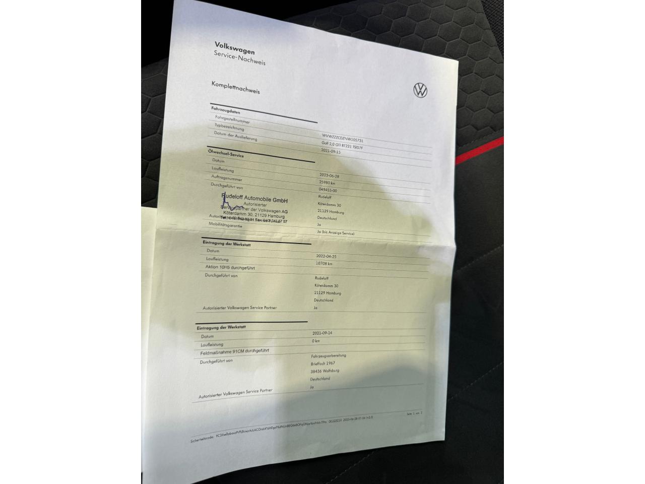 - 1er entretien fait le 28/06/2023 à 25 980Km chez VW.